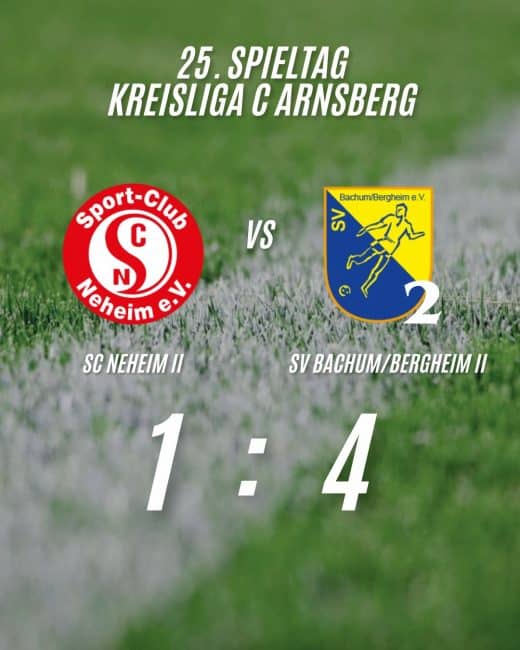25. Spieltag Kreisliga C: SC Neheim II – SV Bachum/Bergheim II 1:4